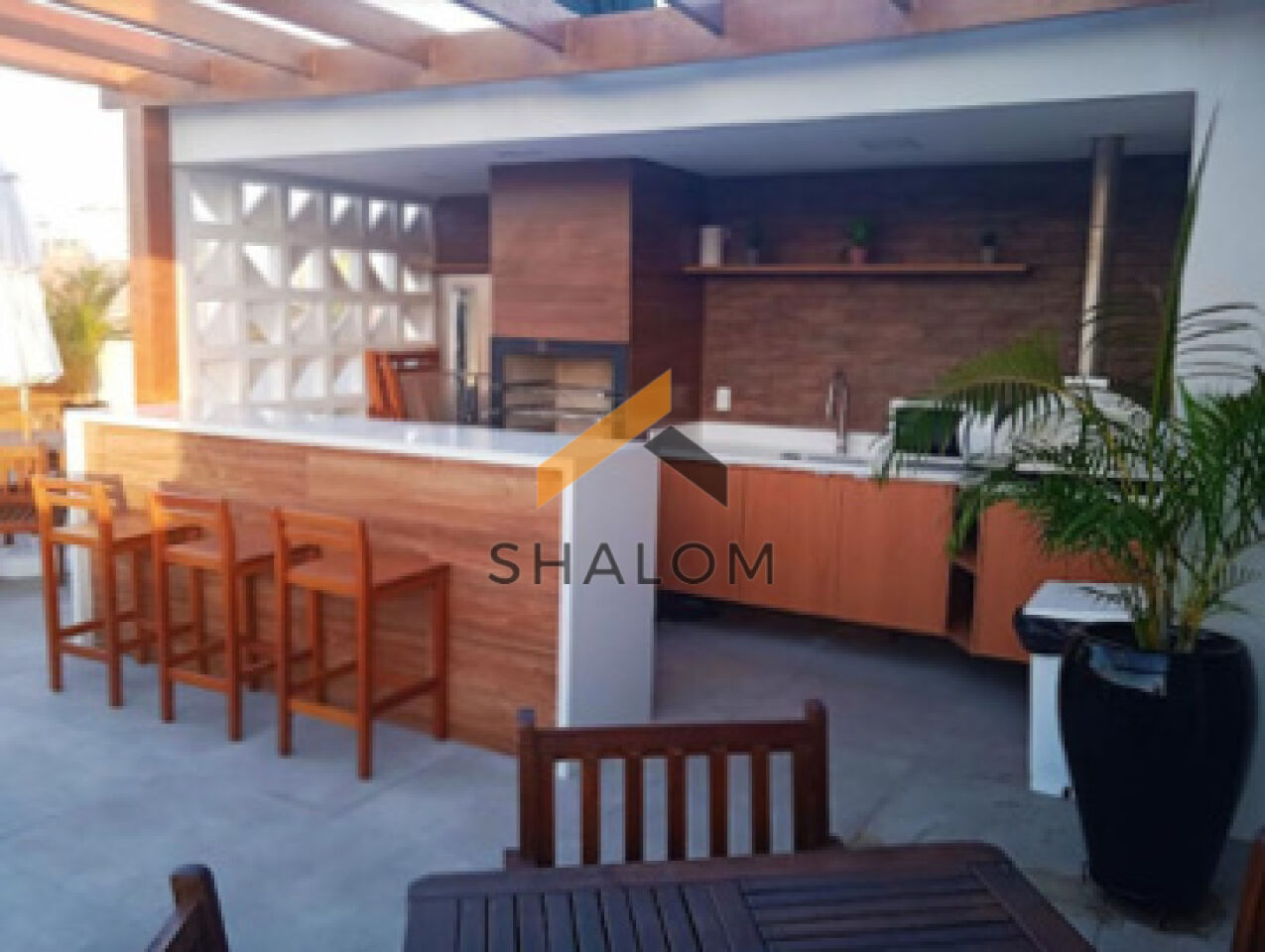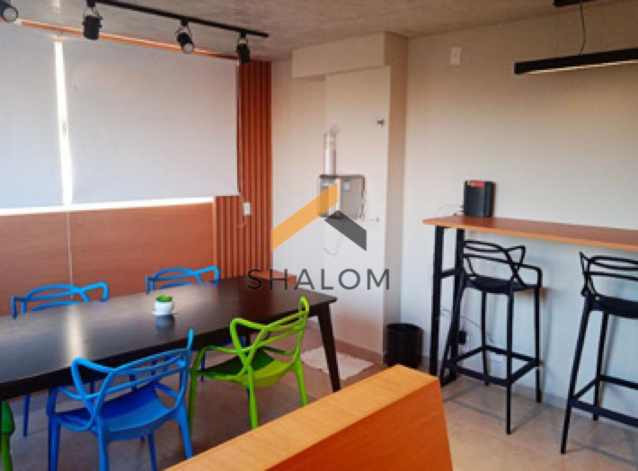 Com 28m² bem distribuídos, o imóvel conta com sala integrada à cozinha com armários planejados, formando um ambiente funcional e bem iluminado. Possui área de serviço e 1 suíte com armário e varanda, garantindo boa ventilação e iluminação natural.