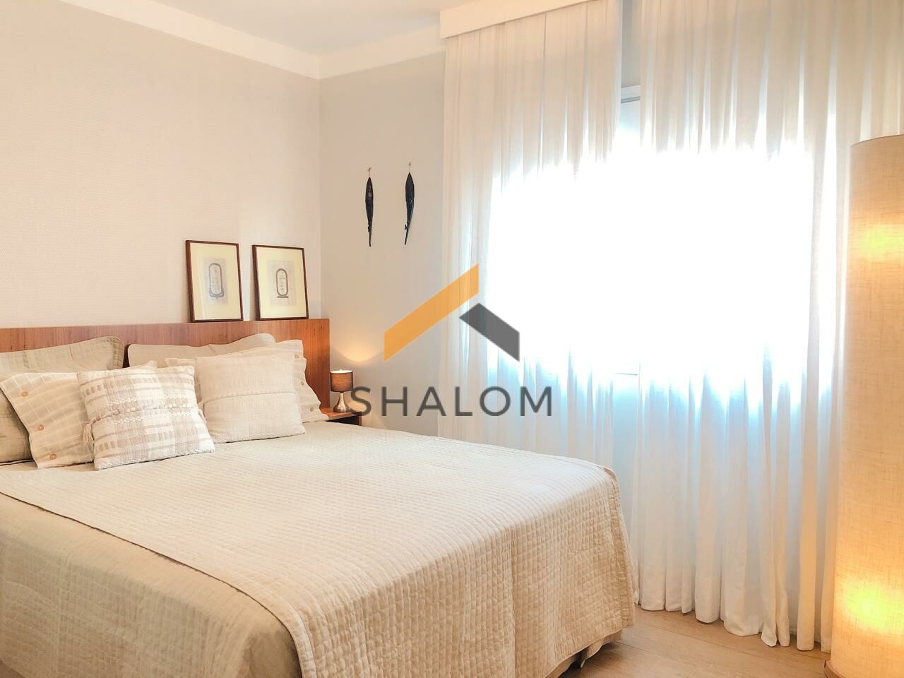 Ao passar pelo corredor, você chega à área dos quartos, que oferece um toque de privacidade. O apartamento foi reformulado para transformar o layout original de três quartos em uma suíte master bastante generosa, com um closet espaçoso e um cantinho ideal para o seu home office. O banheiro social, além de ser bem ventilado, aproveita a luz natural e proporciona uma vista tranquila do nascer do sol. O segundo quarto é igualmente confortável, e o banheiro social é funcional e prático para este ambiente.