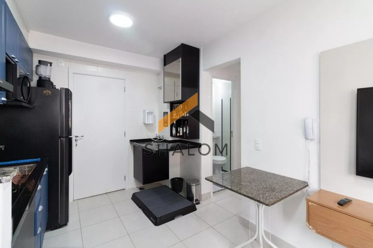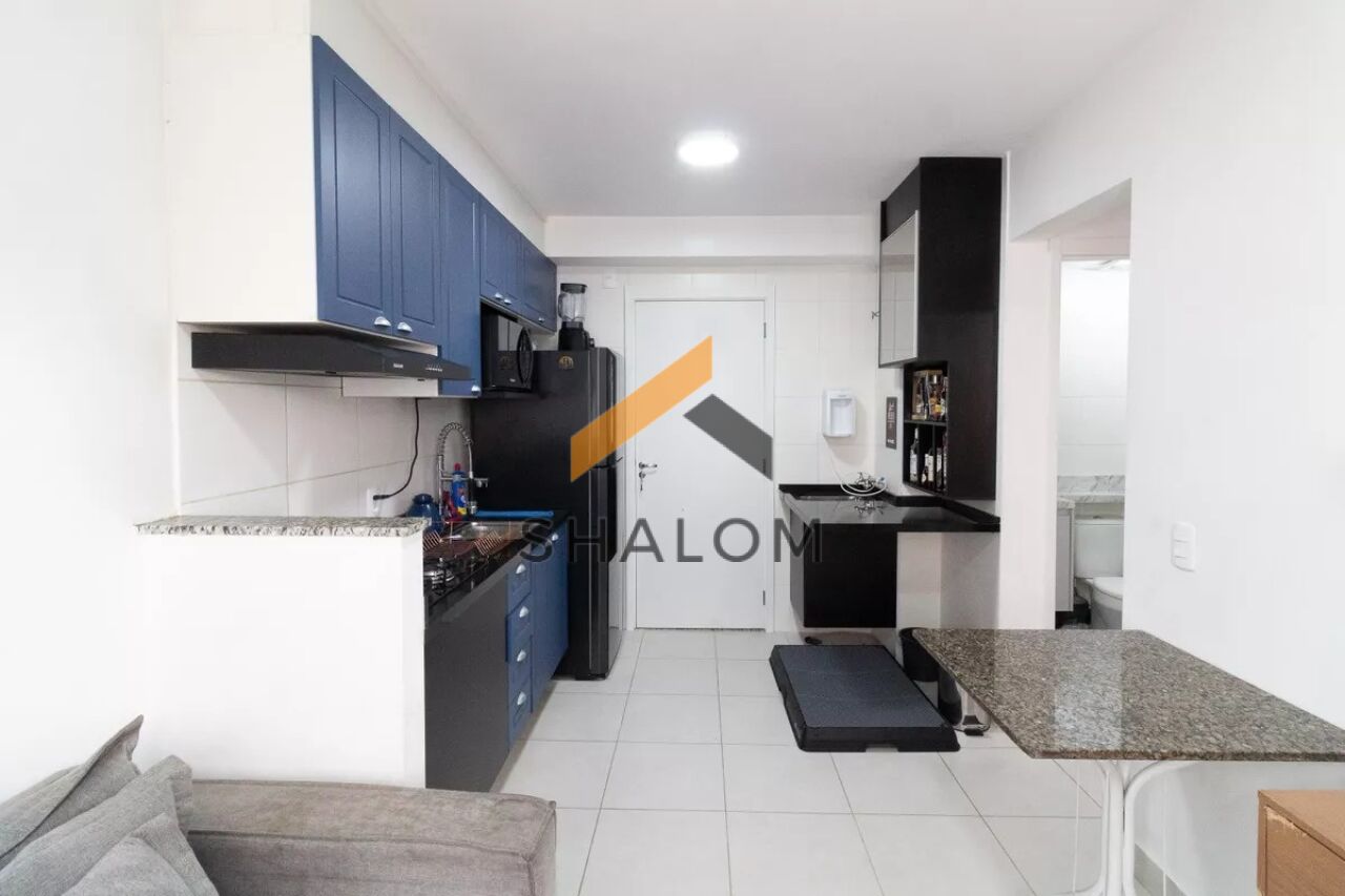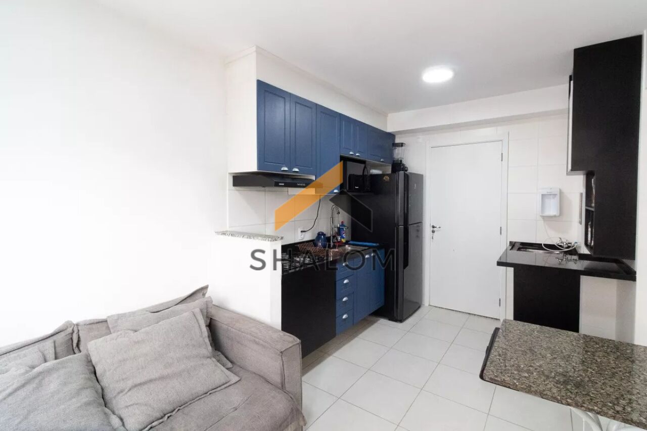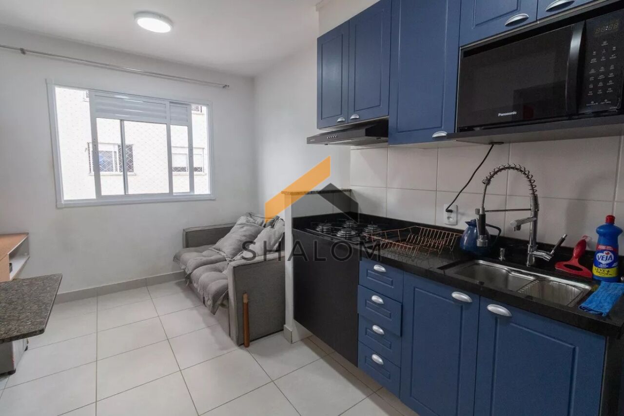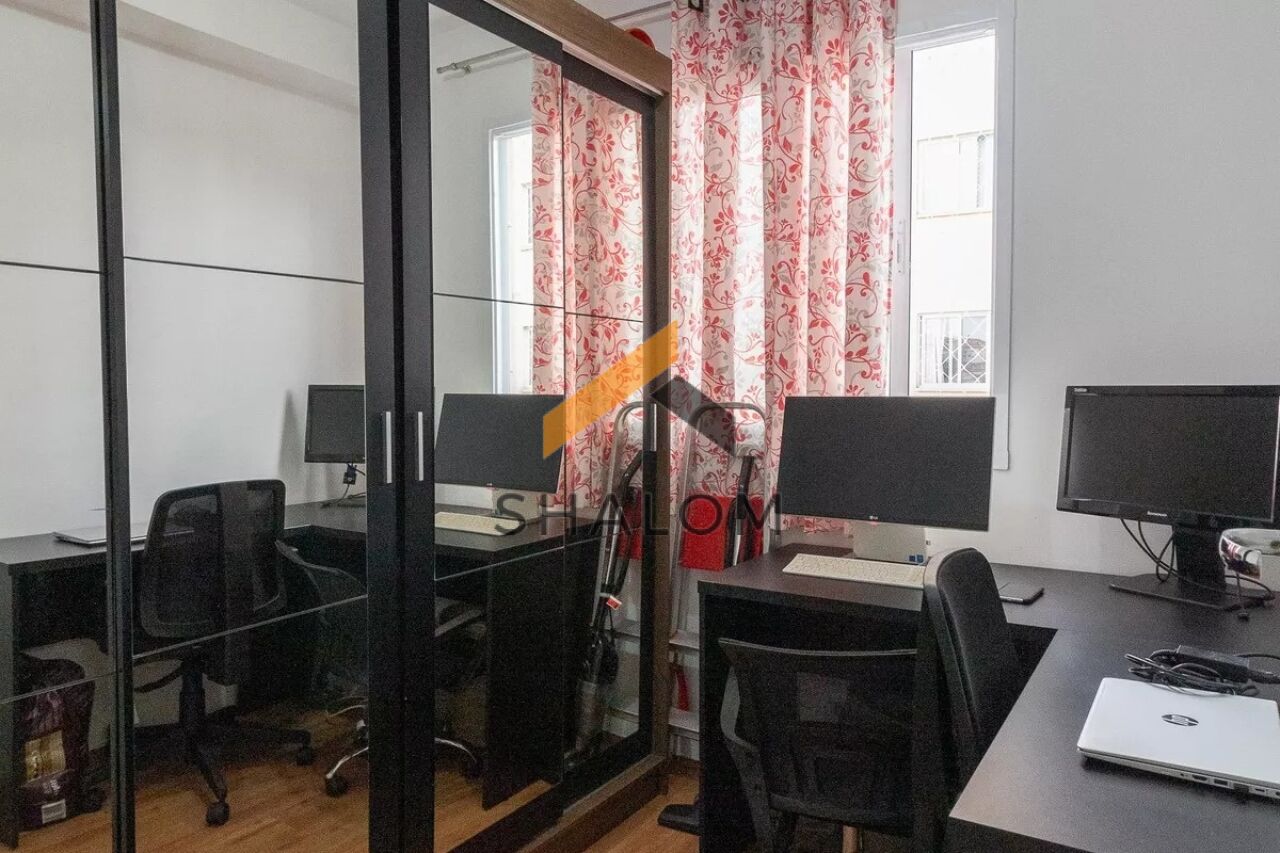 O apartamento possui 33m² muito bem distribuídos, com sala integrada à cozinha, proporcionando um ambiente moderno e funcional. Conta com 1 dormitório, 1 banheiro e 1 escritório, que pode ser facilmente utilizado como segundo quarto, ideal para quem trabalha em home office ou precisa de um espaço extra.