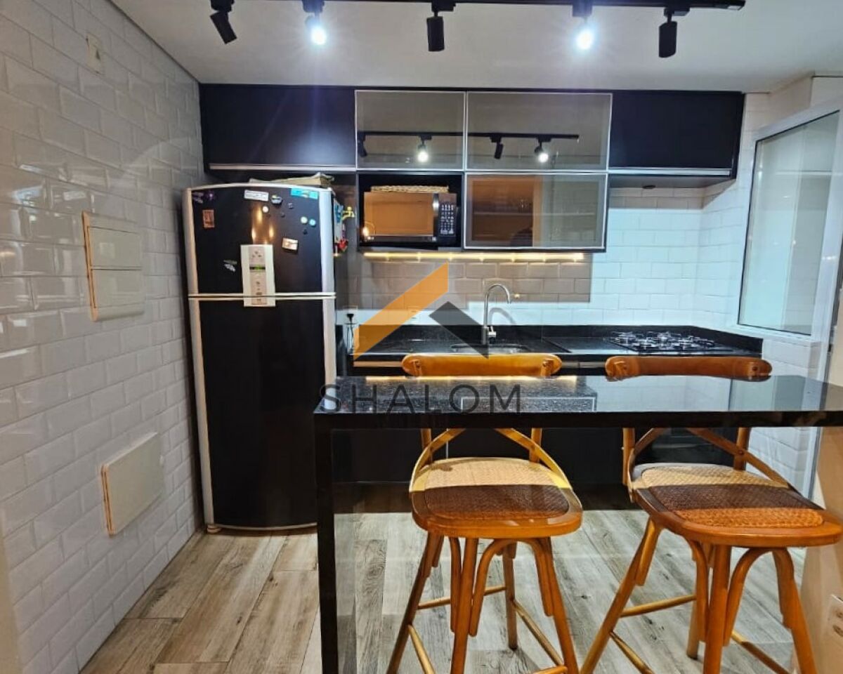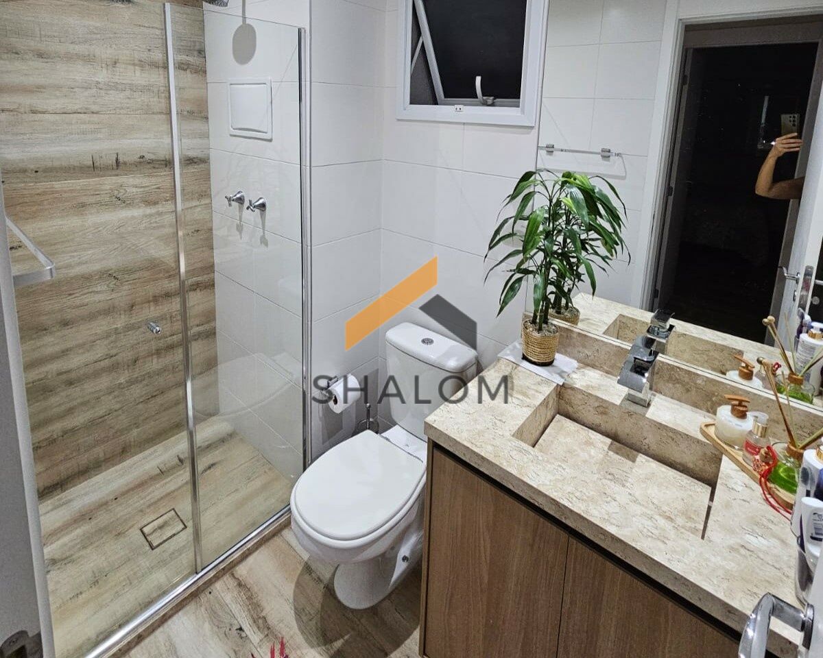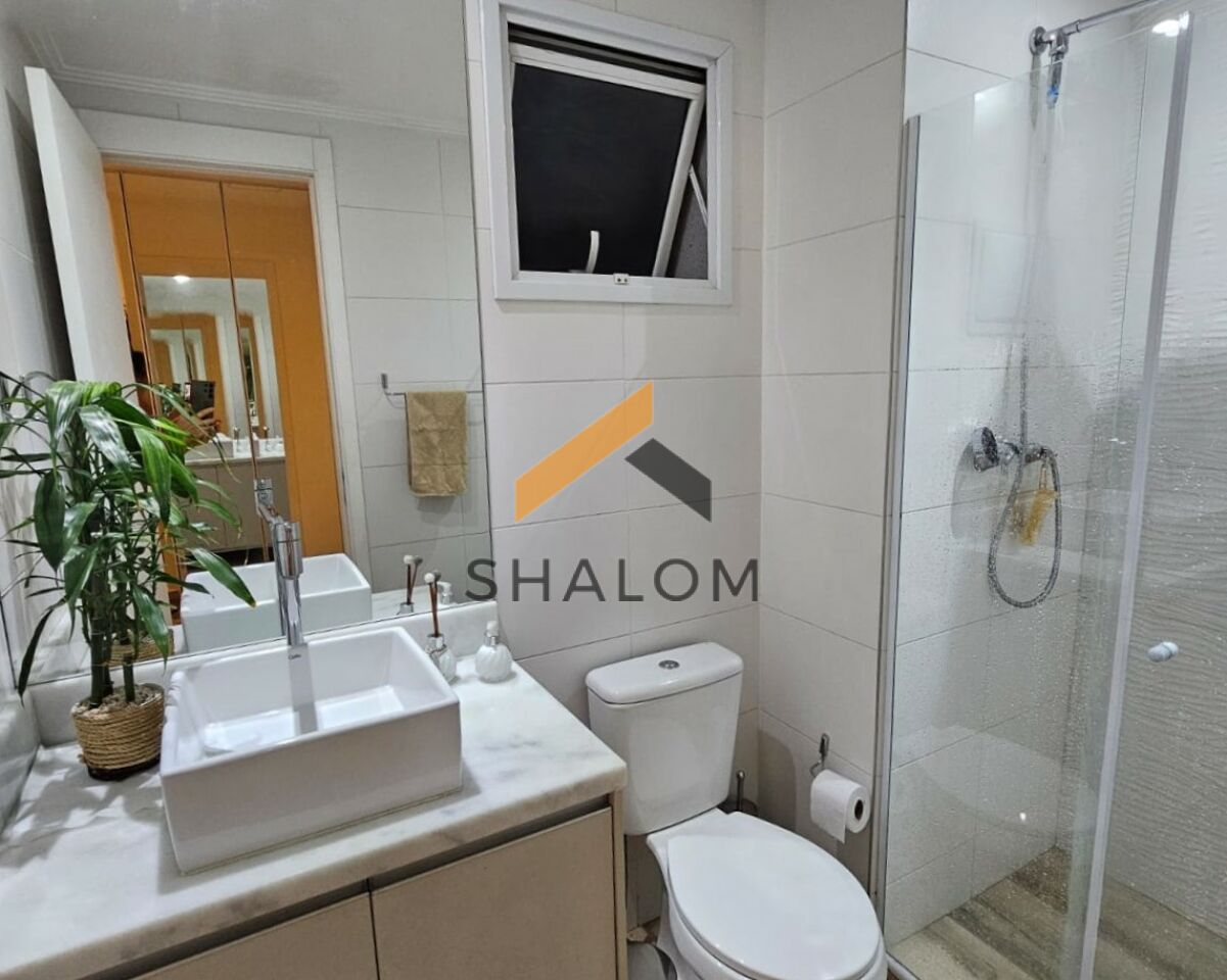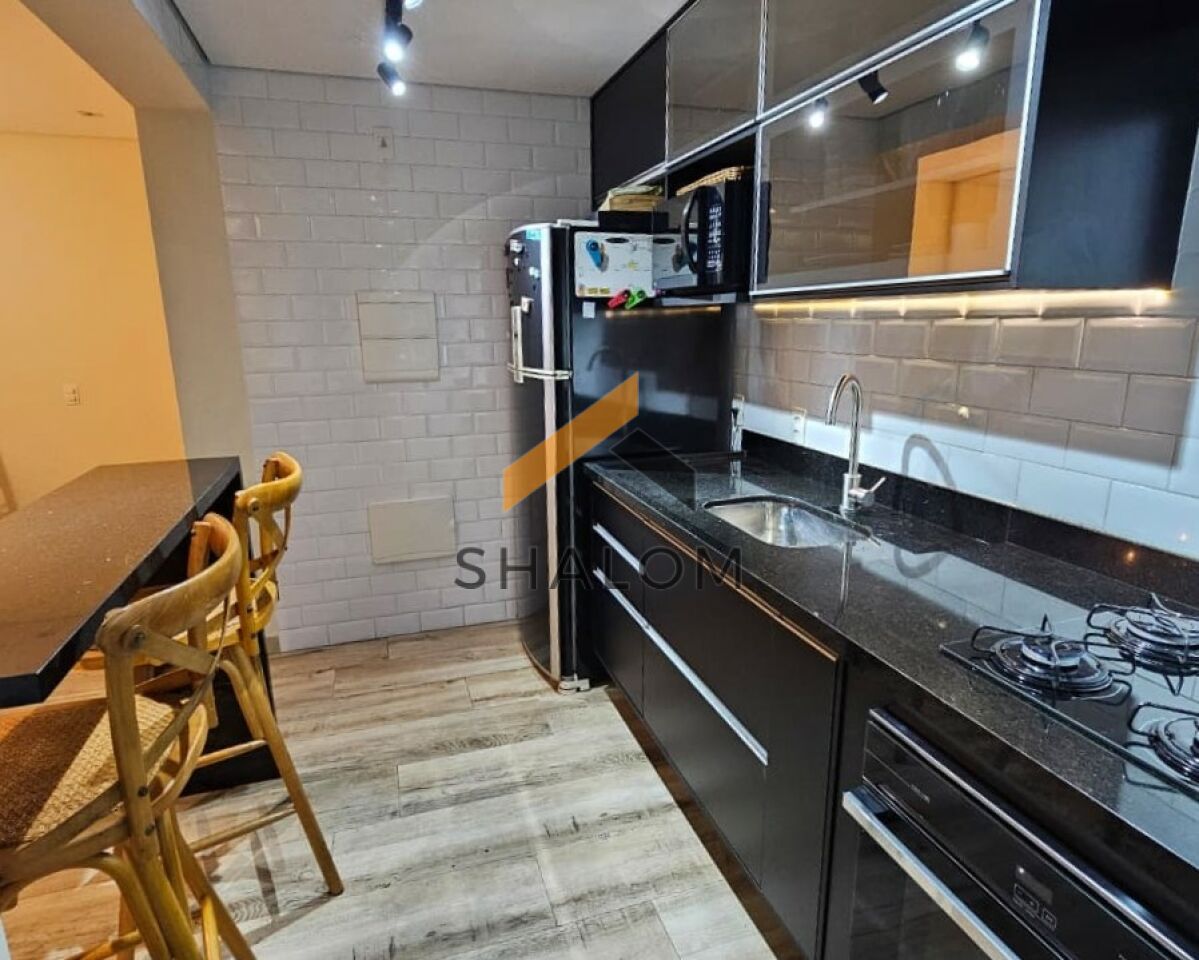A área íntima conta com 2 dormitórios, sendo 1 suíte. Todos os cômodos possuem armários embutidos, garantindo praticidade e organização. O imóvel dispõe ainda de área de serviço, 2 vagas de garagem e um depósito de 2m².