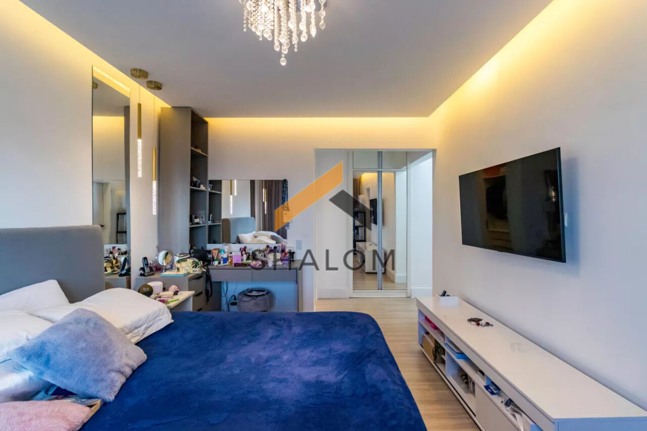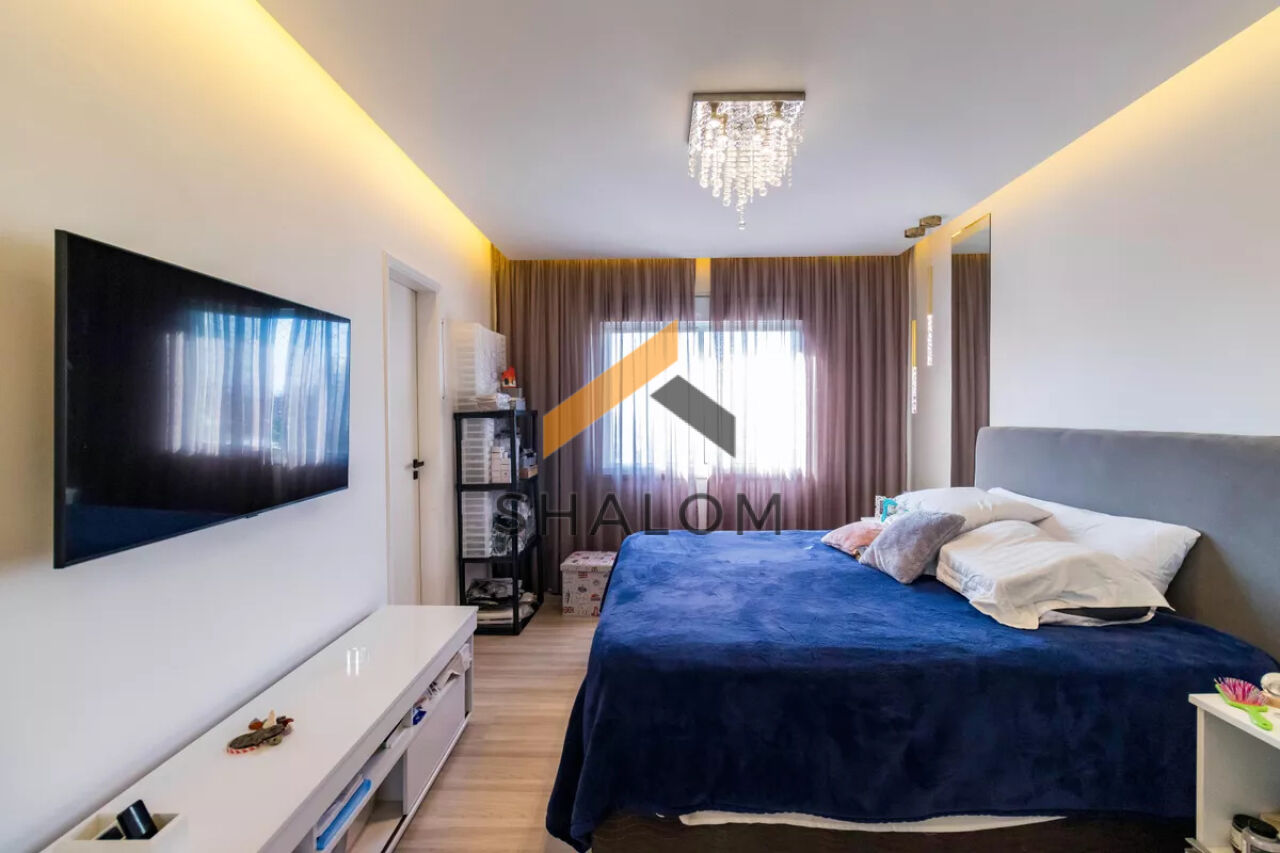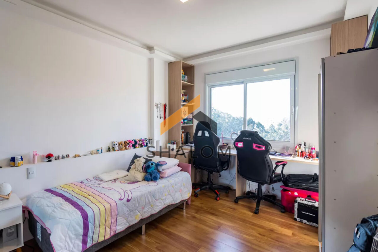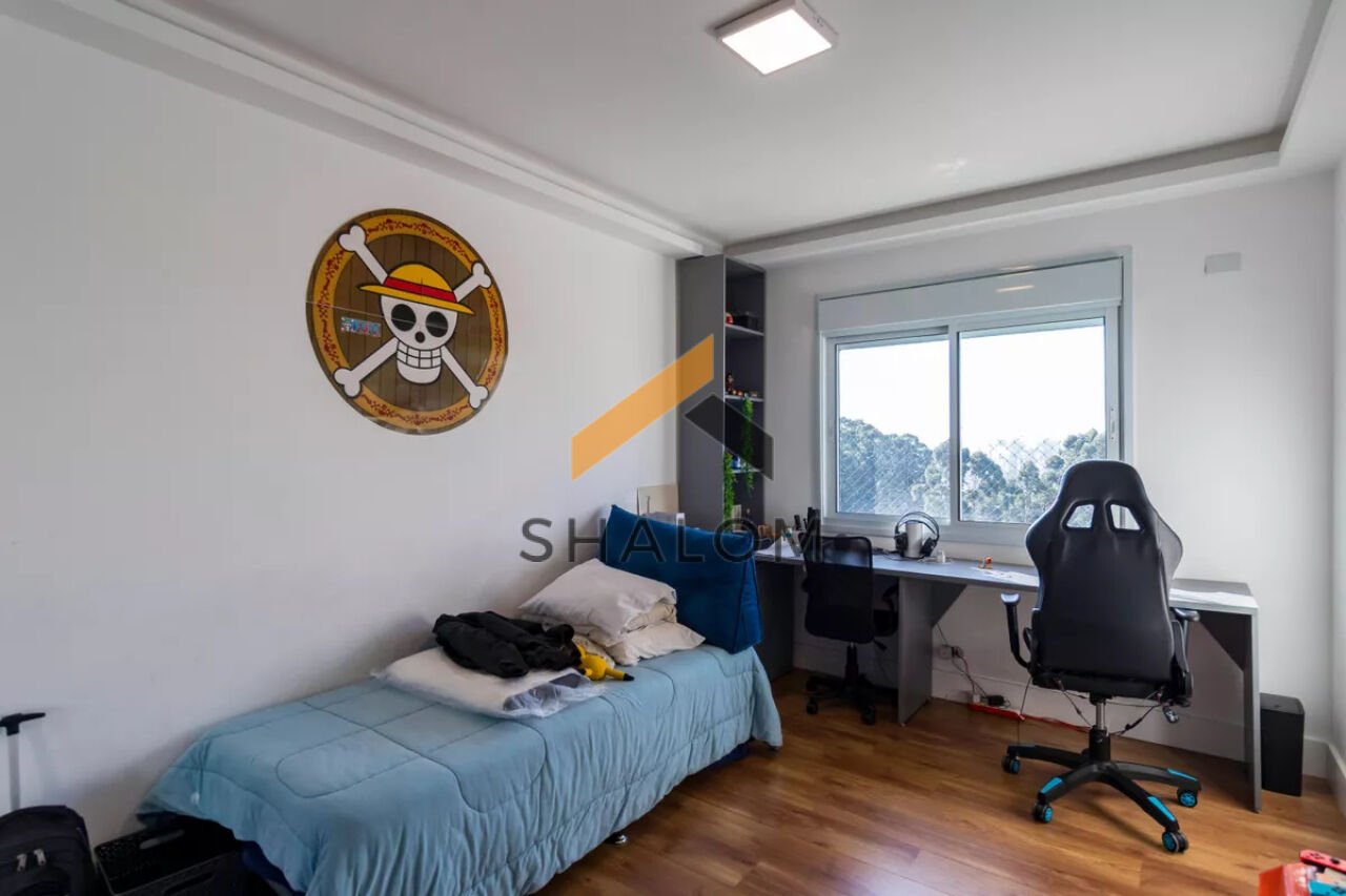 A área íntima conta com 5 dormitórios, sendo 2 suítes, uma delas com amplo closet. Todos os quartos possuem armários embutidos. O imóvel dispõe de 5 banheiros ao todo e 3 vagas de garagem.