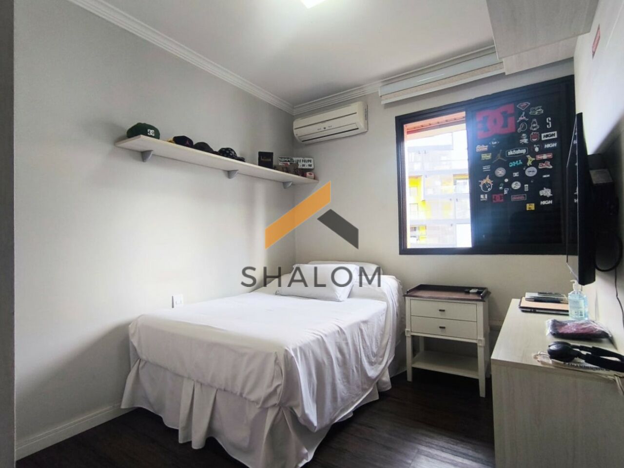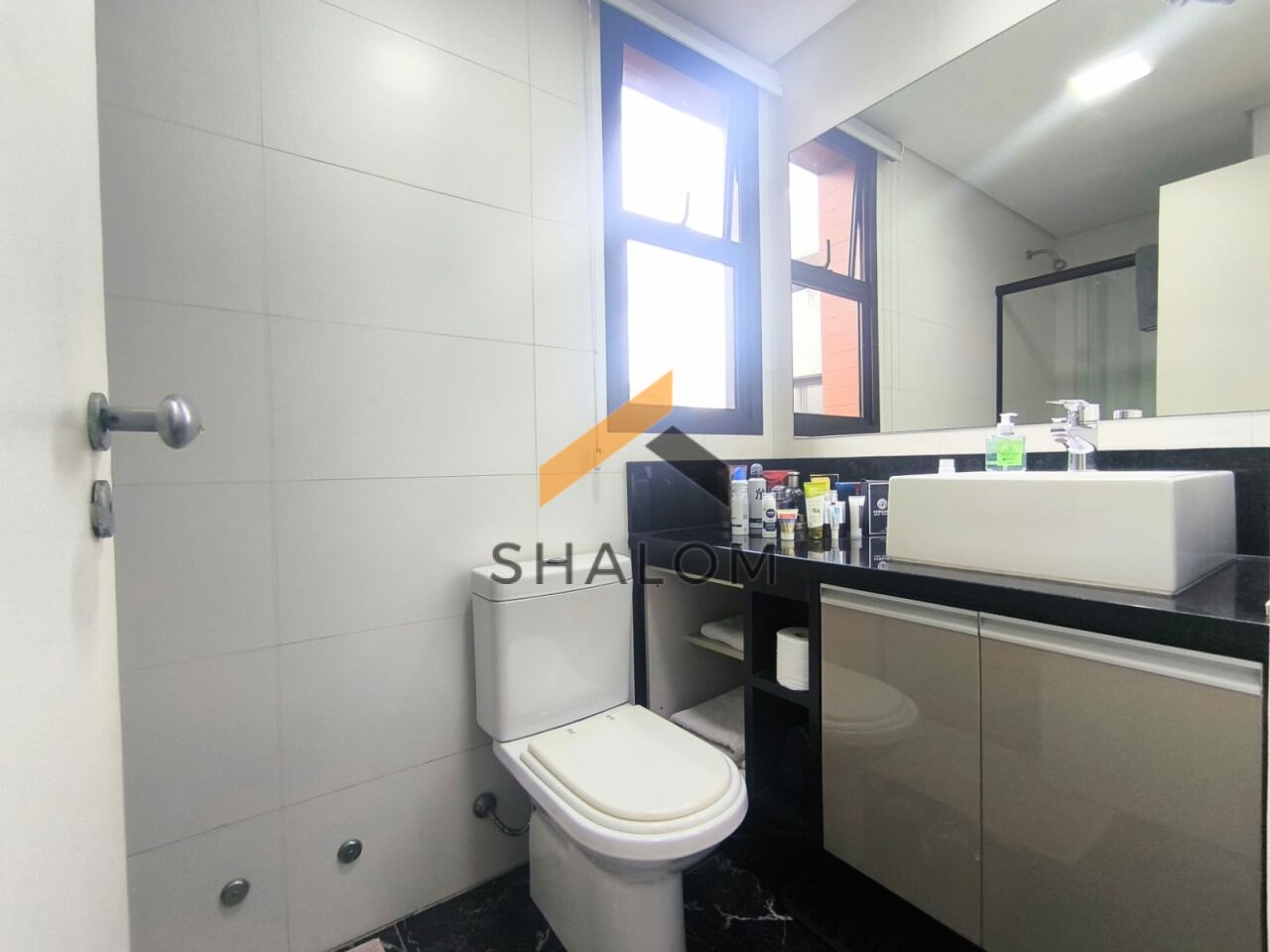 A cozinha e os banheiros foram projetados com armários planejados, garantindo praticidade e organização no dia a dia. O apartamento conta ainda com uma área de serviço separada, ar condicionado instalado, box e chuveiro a gás, oferecendo conforto e eficiência. O imóvel conta com 2 vagas de garagem e um depósito privativo, trazendo mais praticidade para quem necessita de mais espaço.