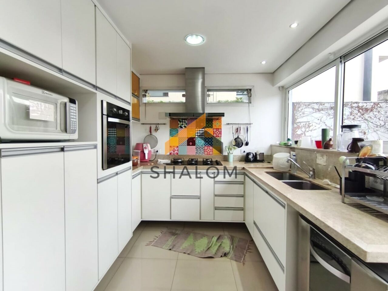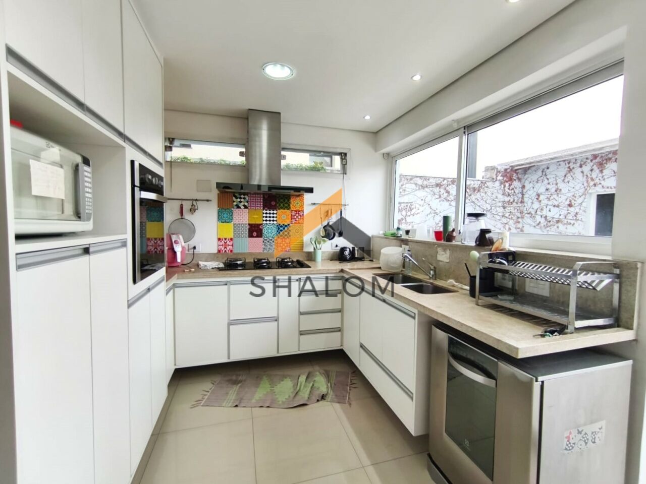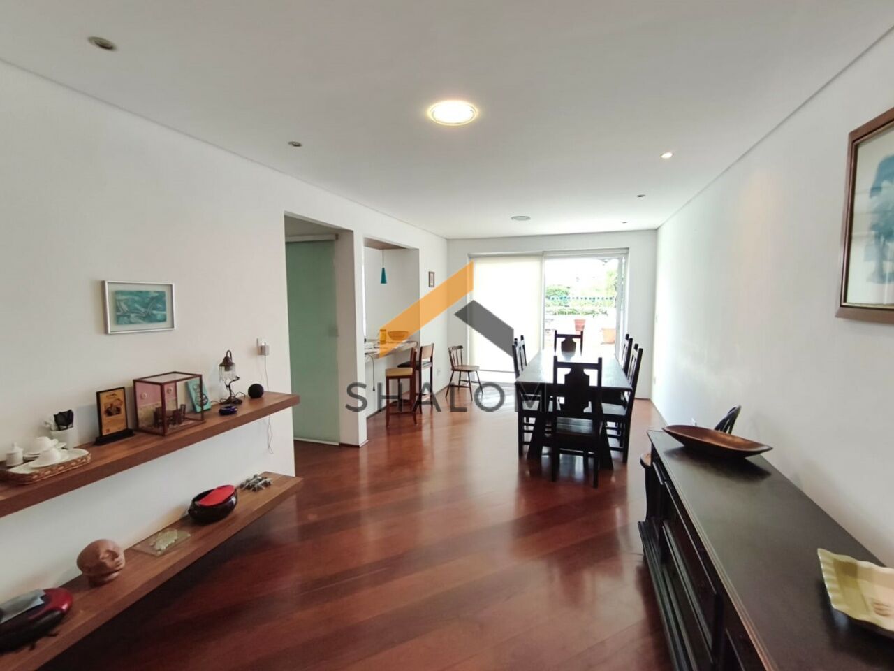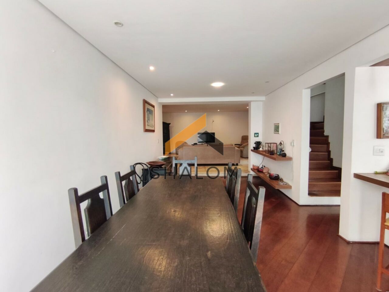 O imóvel conta com living amplo e muito bem iluminado, com lareira, integrado à sala de jantar, criando um ambiente acolhedor e funcional. A cozinha possui armários planejados e ótima circulação.