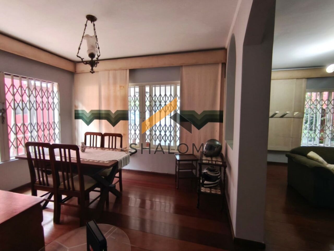A propriedade conta com jardim frontal e um living amplo e bem iluminado, integrando sala de estar e sala de jantar, além de um lavabo que traz ainda mais comodidade. A copa e a cozinha com armários embutidos oferecem praticidade no dia a dia, enquanto a área de serviço garante organização.